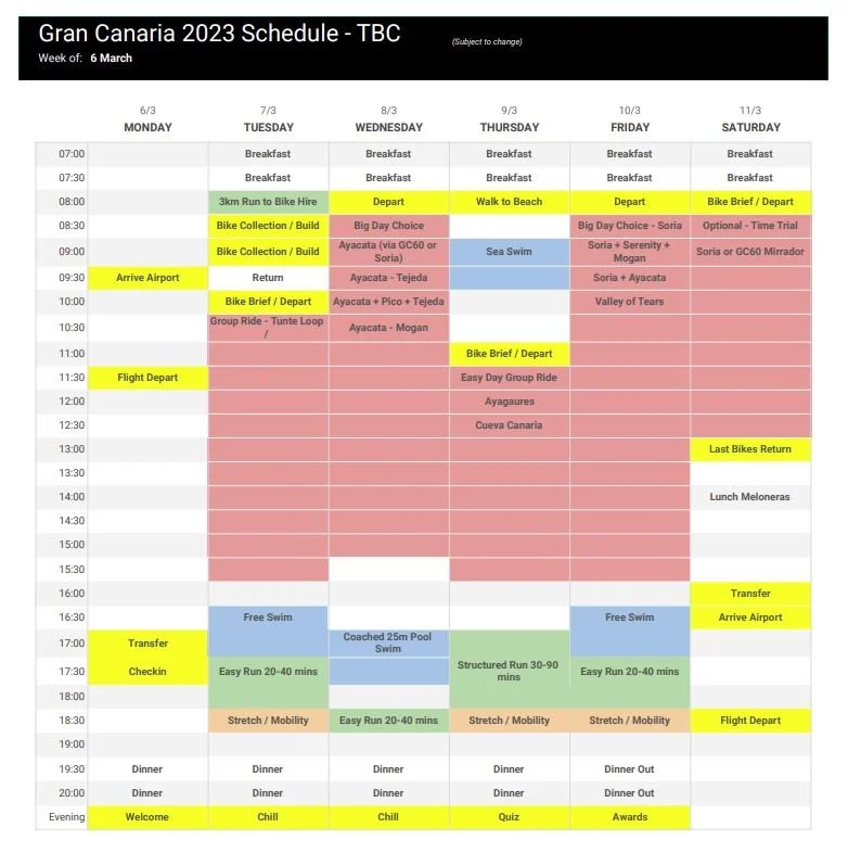 Following the success of last year's Trip. We are returning to Gran Canaria for a training trip on Monday 6th - Saturday 11th March. For any further info, drop us a message or simply book on by paying your deposit (Details below)